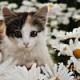 Мой питомец среди ромашек в нашем палисаднике